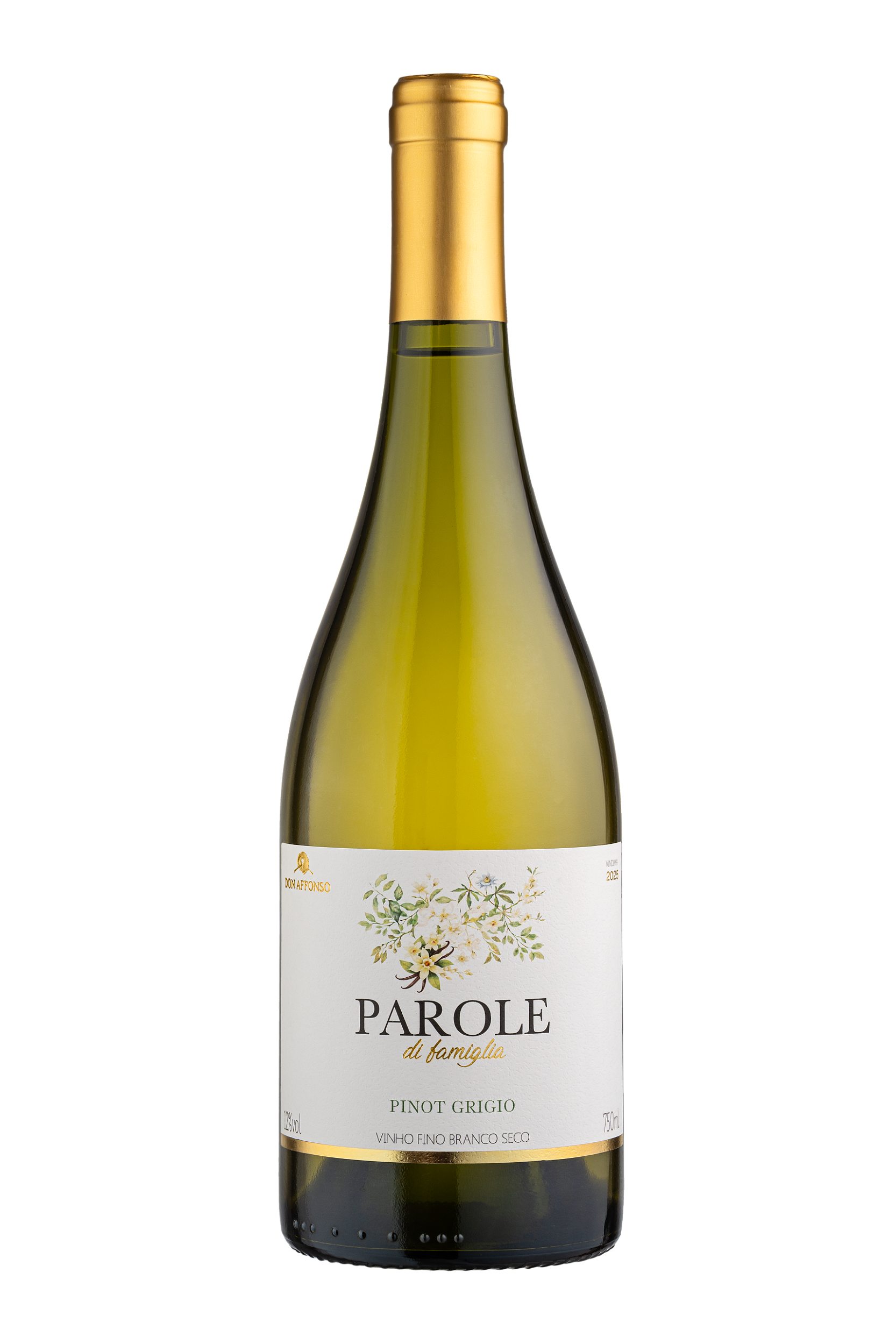 Vinho de visual límpido e cristalino, coloração amarelo-palha com reflexos esverdeados, o Parole Pinot Grigio segue o perfil fresco e vibrante que essa variedade apresenta em seus melhores exemplares italianos. A colheita é manual seguida imediatamente de refrigeração das uvas, garantindo a preservação do frescor das frutas. Os aromas característicos da variedade se apresentam de forma exuberante, com nítidas frutas cítricas como limão siciliano e taiti e frutas de polpa branca como maçã verde e pera. Em boca possui corpo leve e acidez marcante, que convida à próxima taça.